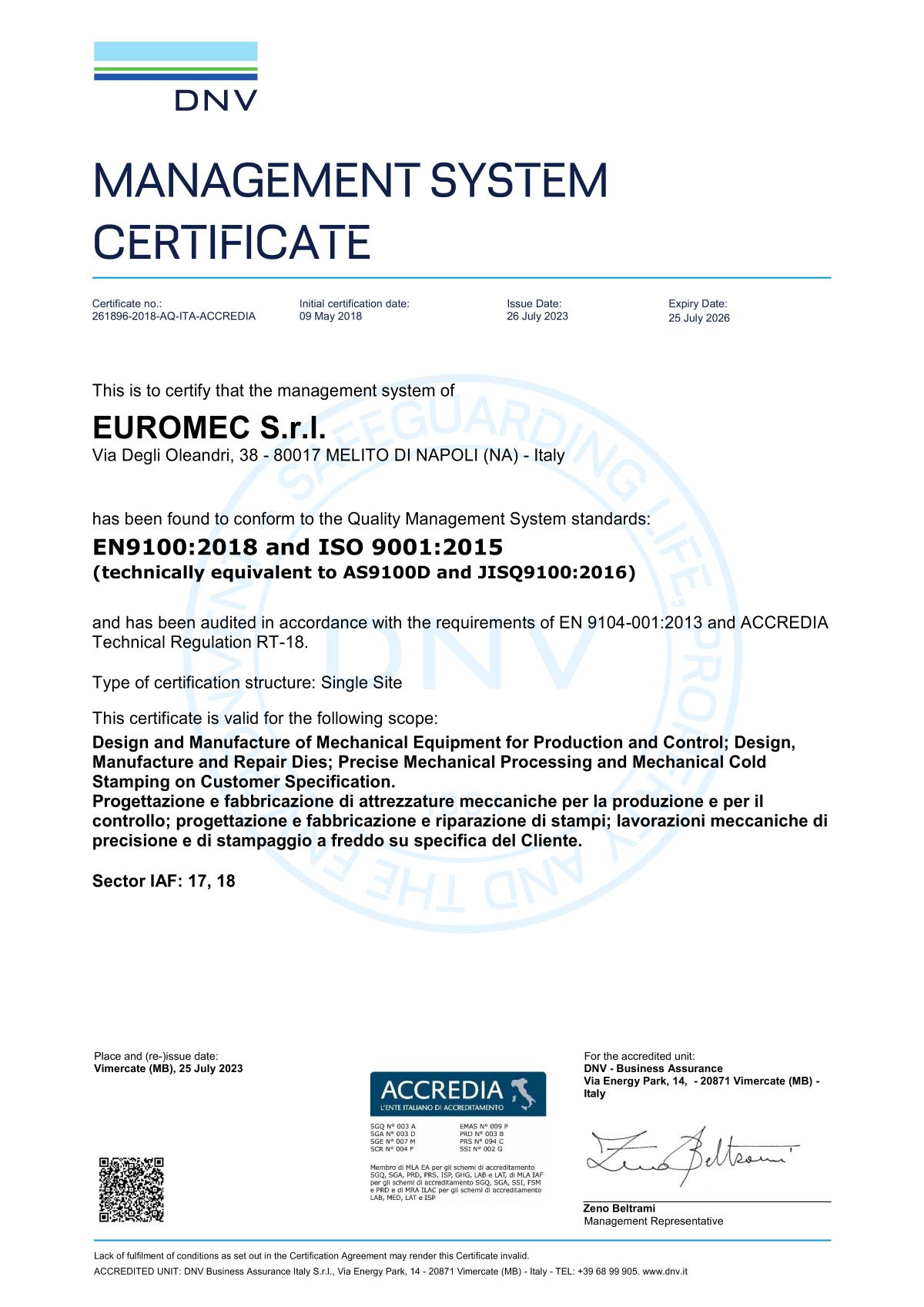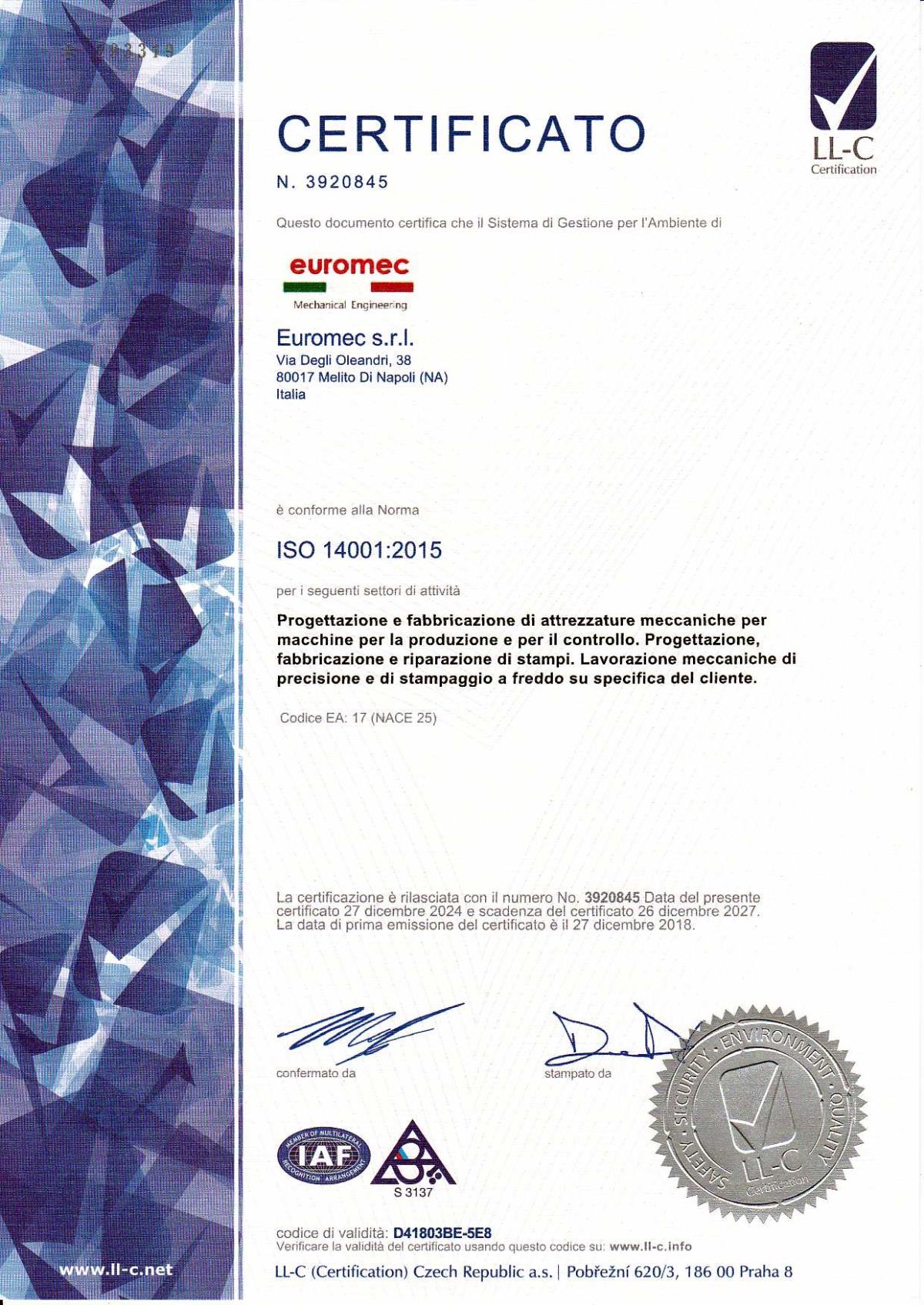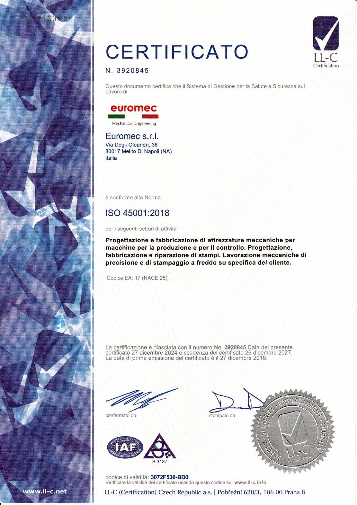 Uno dei punti di forza della Euromec s.r.l. è la formazione e l'aggiornamento continuo delle nostre competenze e dei nostri strumenti di lavoro. Le certificazioni ci permettono di offrire servizi di qualità secondo importanti standard. Le attività di Euromec s.r.l. Si pongono l’obiettivo di garantire alti standard di produzione e di perseguire questo fine continuando a investire in innovazione e miglioramento